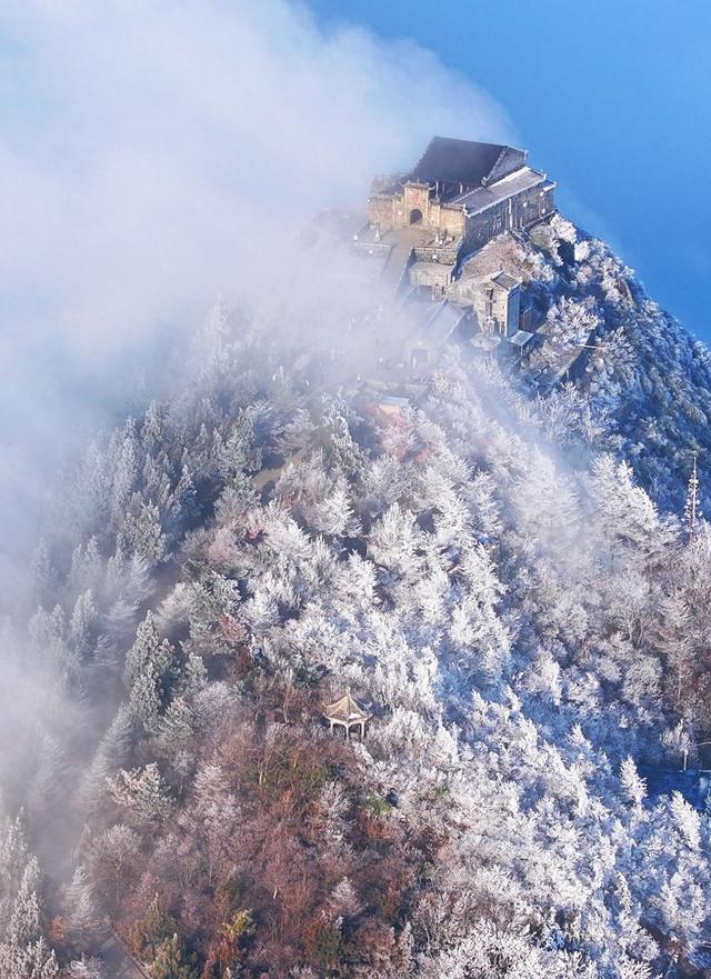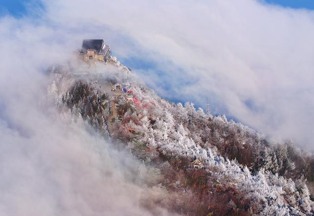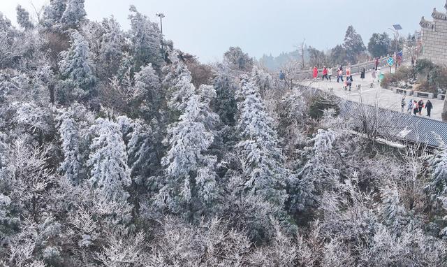 连日来,湖南省衡阳市南岳衡山风景区出现雾凇云海景观鑫月配,壮美如画的景色吸引众多游客前来观赏游玩。